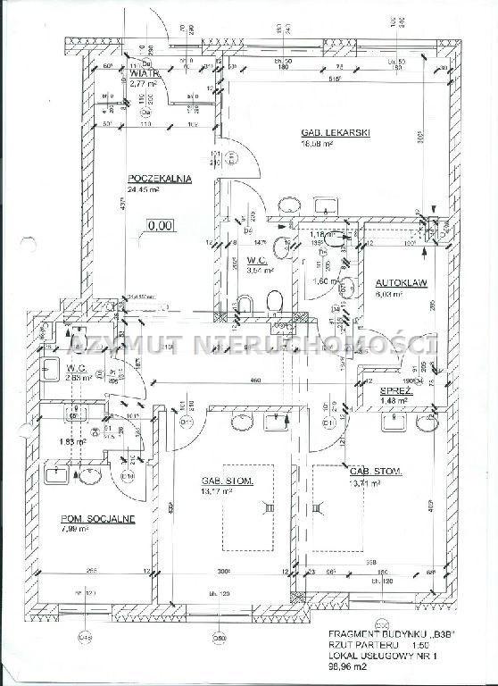 Lokal użytkowy o powierzchni 100 m2, zlokalizowany na parterze budynku z cegły przy ul. Broniewskiego 19, z dużą witryną i wejściem od ulicy, idealny na gabinety lekarskie, biura, szkołę językową, itp.