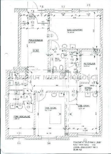 Na powierzchnię 100 m2 składa się: recepcja 25 m2, 5 pokoi :20 m2, 14 m2, 14 m2, 9 m2, 8m2 ( najmniejszy bez okna ), pomieszczenie gospodarcze, które może służyć jako archiwum, 3 toalety i pomieszczenie socjalne - kuchnia.